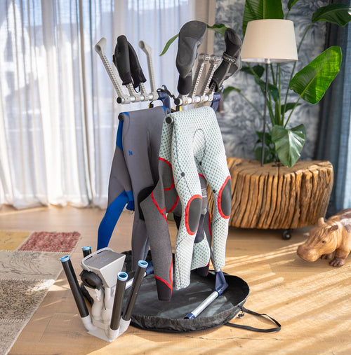 Axel et moi avions marre de la salle de bain désorganisée d'après session, pour en plus enfiler ensuite une combinaison humide et froide qui écourtait nos sessions. Nous avons donc inventé COMBIZEN.